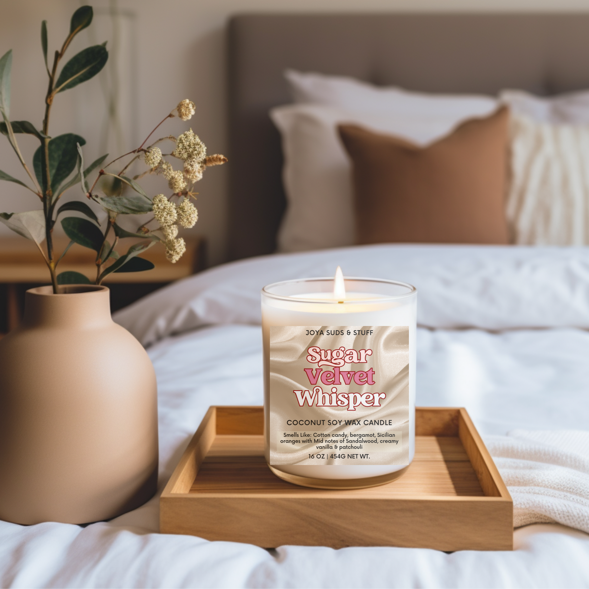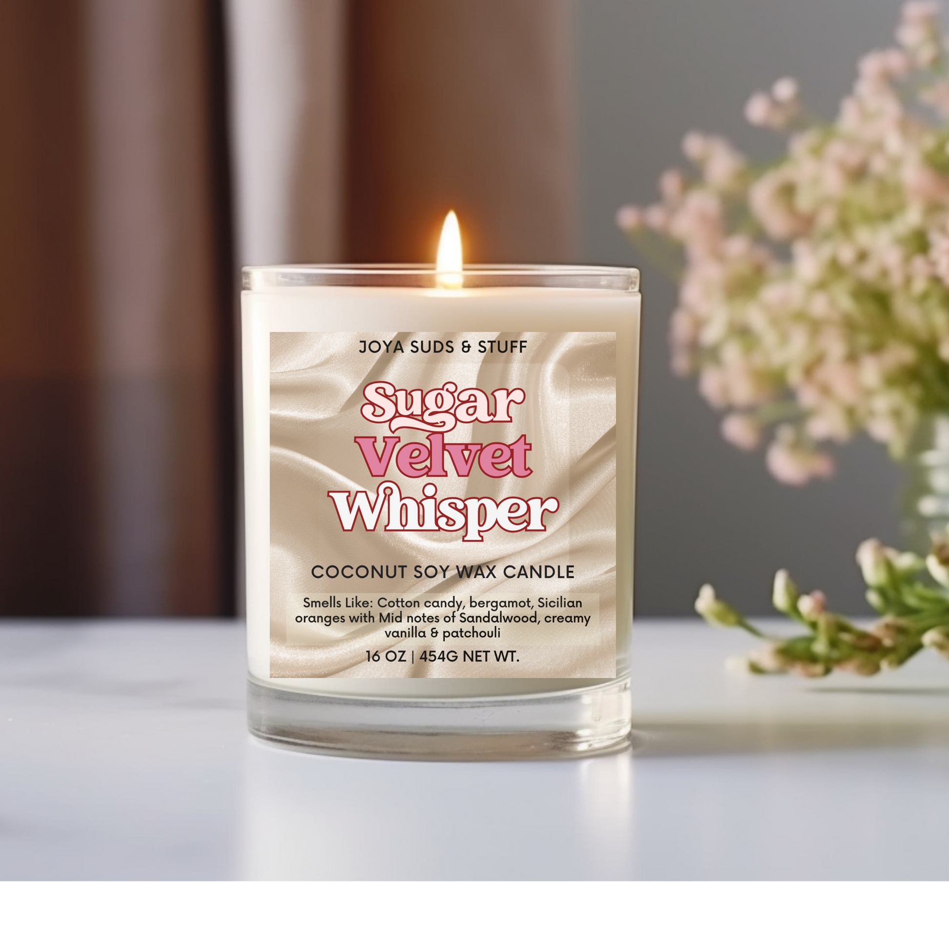 Indulge in the sweet luxury of our Sugar Velvet Whispers Coconut Soy Candle.